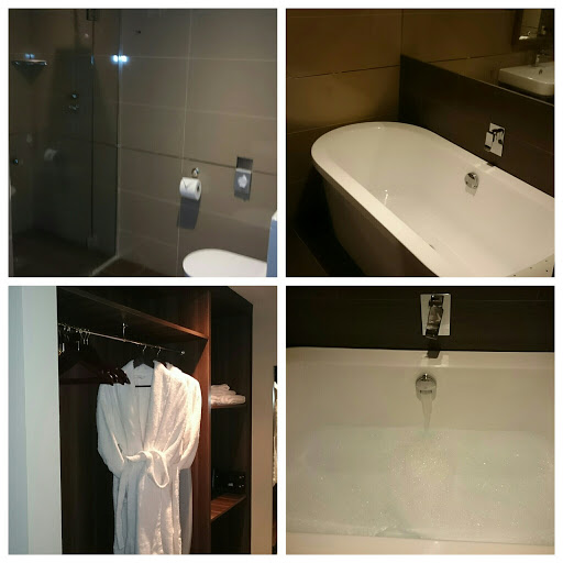 The reception area of the hotel is very well decorated with feature wallpaper, crushed velvet sofas and very spacious lobby area. I saw in the reception area that they offer health and beauty services on site also. The lady that checked us in was very courteous and professional at all times, she showed us to our room and gave us our key card and a welcome letter and a comments sheet for us to complete on departing.