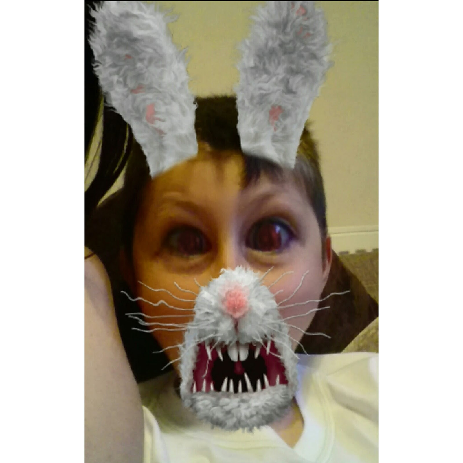 Thank you for being patient, caring and loving as you always are. You always put the feelings of others before your own and always try to make people laugh and smile, you make me smile every day, you are an amazing person and I am proud of you every minute of every day. Just the other day me and you were both crying with laughter to the point where we were struggling to breathe, discovering the face swap feature on snapchat and then laughing so much it done absolutely nothing for our new strange faces. I can’t remember the last time I laughed like that, I don’t know if I have the mentality of a 10 year old or if you are quite mature but either way we are clearly cut from the same cloth and have the same humour. I wish I had saved all of the pictures we took, but I do have this little gem of you as an evil bunny, scary but hilarious.