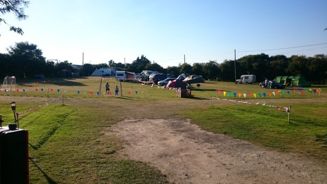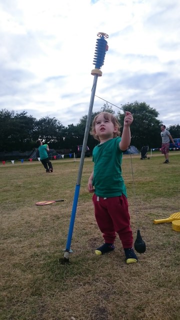 The trip itself went as all things do when we do them, we just winged it. I ran around chasing Noah as he fled like he were a caged animal grabbing his chance for freedom, while Andrew struggling trying to erect a tent all by himself. In the larger side of the site where our pitch was, they have kept the whole central area free of pitches and put some toys and play equipment and popped some bunting around to corden the area off. This served well at keeping the kids occupied and in sight.